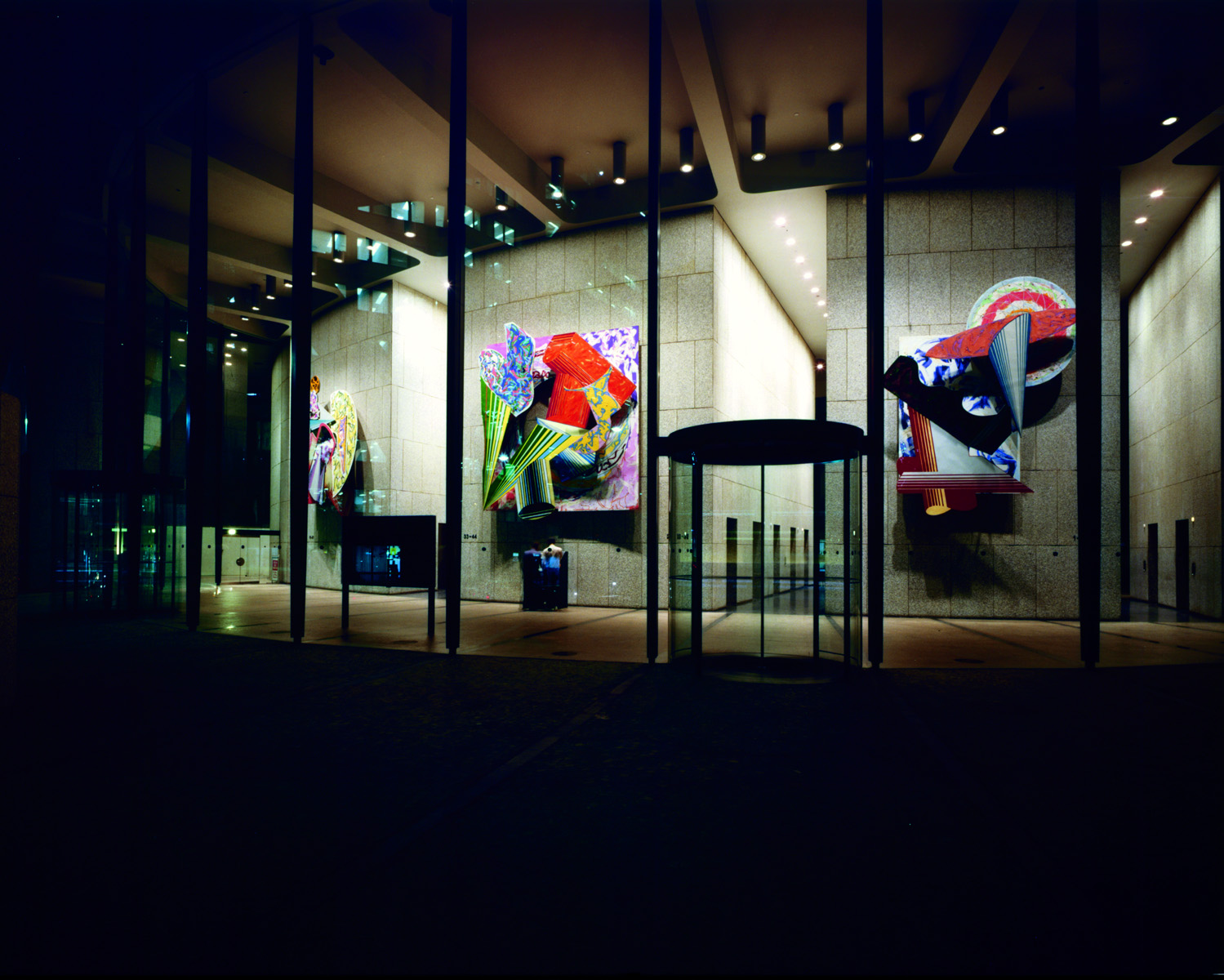 The North Lobby with Frank Stella artworks at night